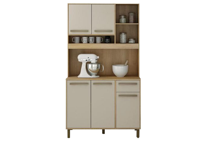 Equipado com puxadores cromados em EPS, gavetas deslizantes telescópicas e amplo espaço de armazenamento com 5 portas e 2 gavetas, oferece funcionalidade premium e design elegante para otimizar seu espaço com estilo.