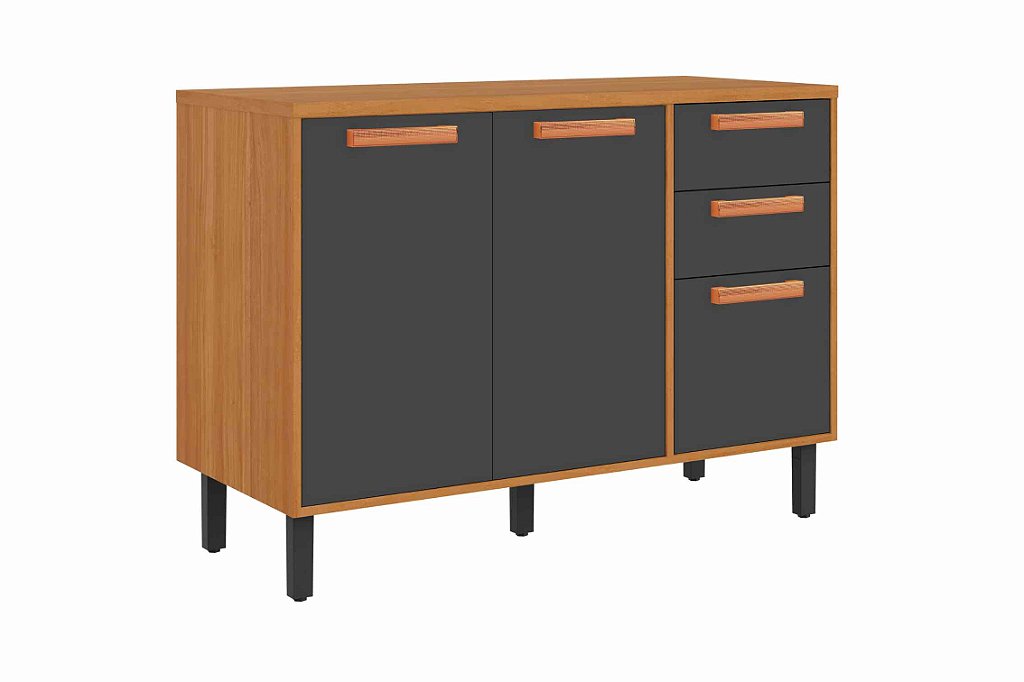 Decore sua casa com estilo e praticidade com o Balcão de 120 cm de largura! Com 3 portas e 2 gavetas com corrediças telescópicas, este móvel é perfeito para otimizar o espaço da sua cozinha ou sala de jantar.
