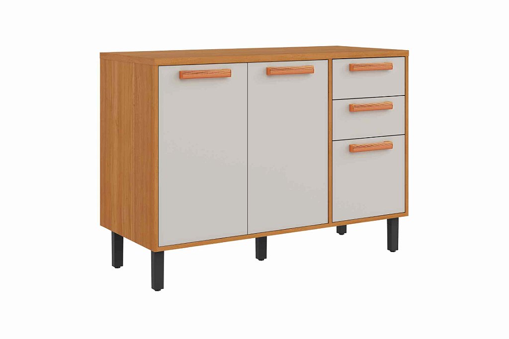 Decore sua casa com estilo e praticidade com o Balcão de 120 cm de largura! Com 3 portas e 2 gavetas com corrediças telescópicas, este móvel é perfeito para otimizar o espaço da sua cozinha ou sala de jantar.
