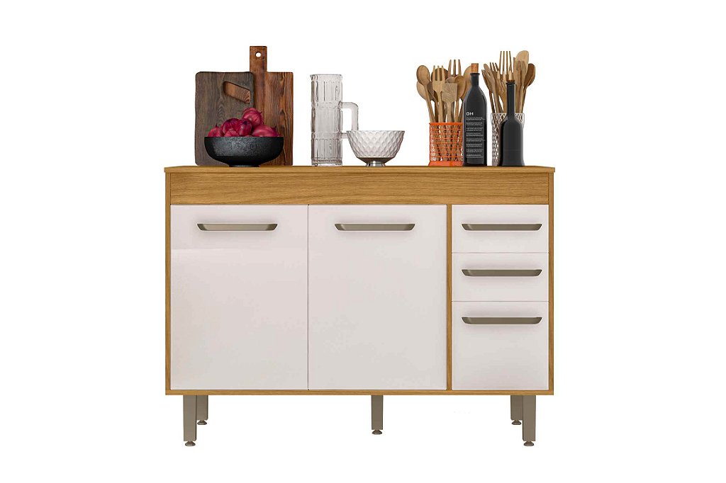 Transforme sua cozinha com o balcão de cozinha perfeito da nossa coleção. Com 03 portas e 02 gavetas, este móvel é ideal para otimizar o espaço e manter tudo organizado. As dobradiças metálicas e corrediças telescópicas garantem durabilidade e praticidade no dia a dia.
