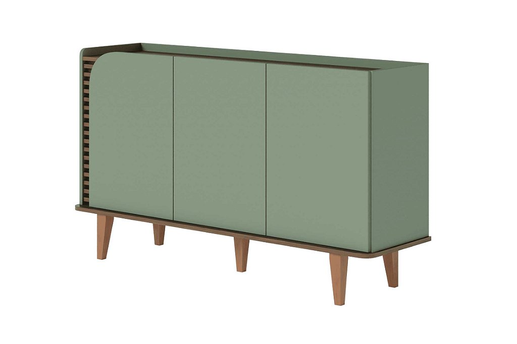 Destaque sua decoração com o buffet exclusivo e sofisticado da nossa coleção. Com 03 portas de giro, uma porta e base com detalhe curvo, este móvel é puro charme e elegância. O detalhe ripado artesanal traz um toque de requinte, enquanto as prateleiras para louças pesadas garantem praticidade e funcionalidade.