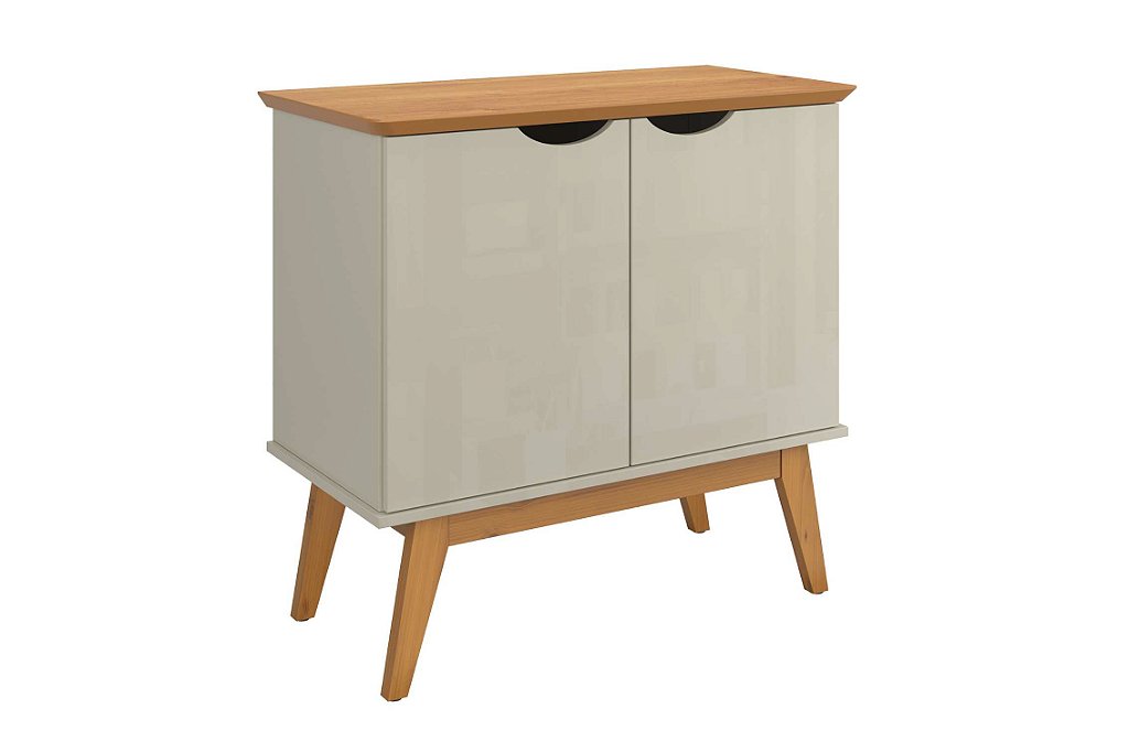 Um buffet elegante e funcional que une beleza e praticidade, apresentando tampo chanfrado e cantos arredondados em MDF de 25 mm, pés em madeira maciça e portas com fechamento suave para uma experiência de uso superior.
