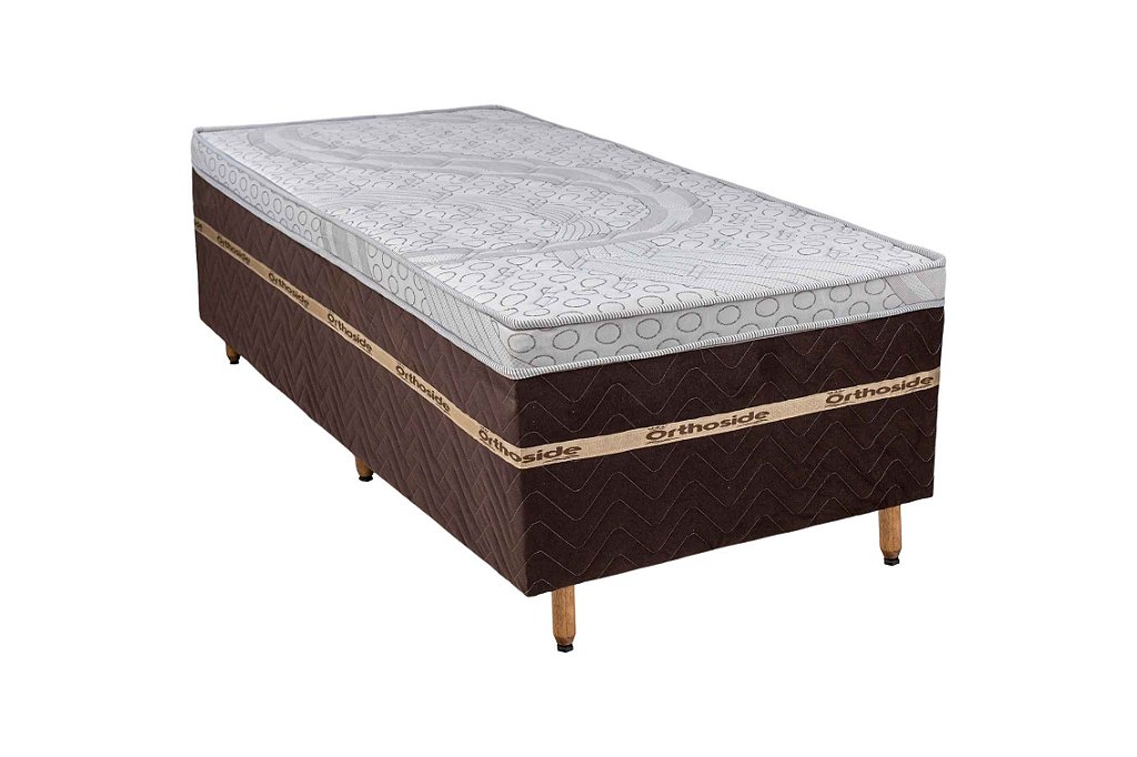 O ColchoBox oferece o equilíbrio perfeito entre conforto e suporte com espuma D28, molas ensacadas e estrutura em eucalipto, tudo coberto por um suave tampo em malha.