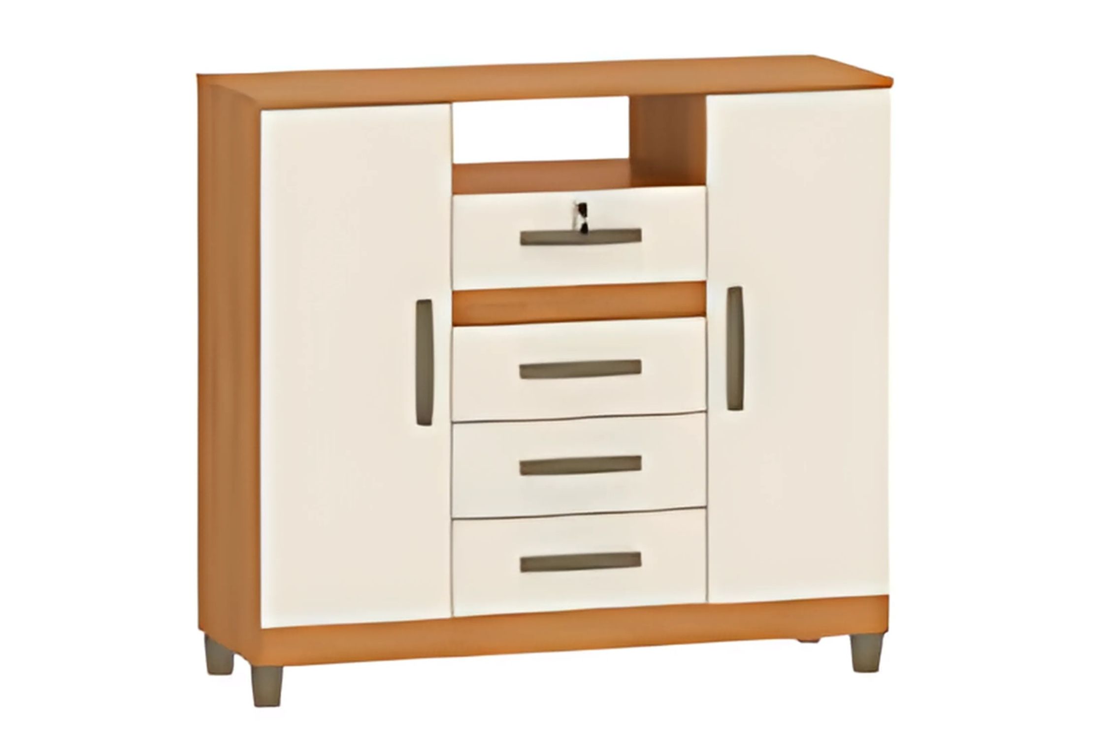 Prática e segura, esta cômoda com 2 portas e 4 gavetas — sendo uma com chave — é perfeita para quem busca organização com discrição. Estrutura reforçada em MDP, com caixa de 12mm, frente e tampo de 15mm, une resistência e estilo. Corrediças telescópicas de 35mm proporcionam abertura suave e durabilidade no uso diário.