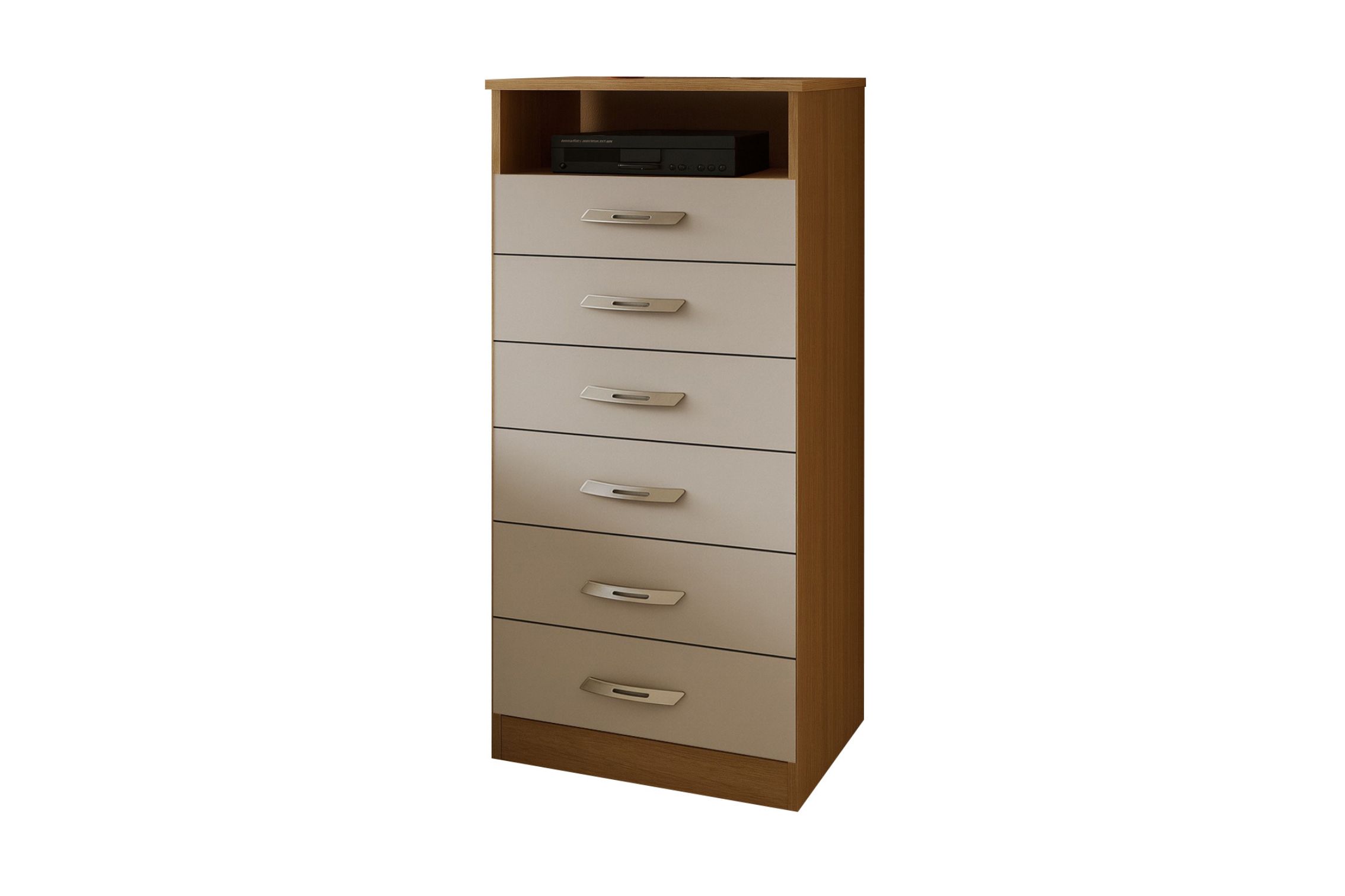 A Cômoda Búzios é fabricada 100% em MDP, conta com excelentes repartições e amplo espaço para você organizar roupas e objetos pessoais. Moderna e elegante, ela possui 06 gavetas, proporcionam maiores possibilidades para organizar seus pertences. Acabamento interno na mesma cor do móvel reúne harmoniosamente beleza, qualidade e durabilidade.