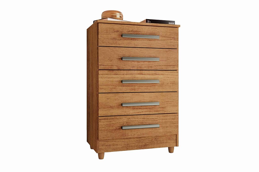 Atualize a decoração da sua casa com a cômoda em MDF e MDP, perfeita para qualquer ambiente. Com 05 gavetas espaçosas e corrediças metálicas que deslizam suavemente, você terá espaço suficiente para organizar suas roupas, acessórios e objetos pessoais de forma prática e funcional.