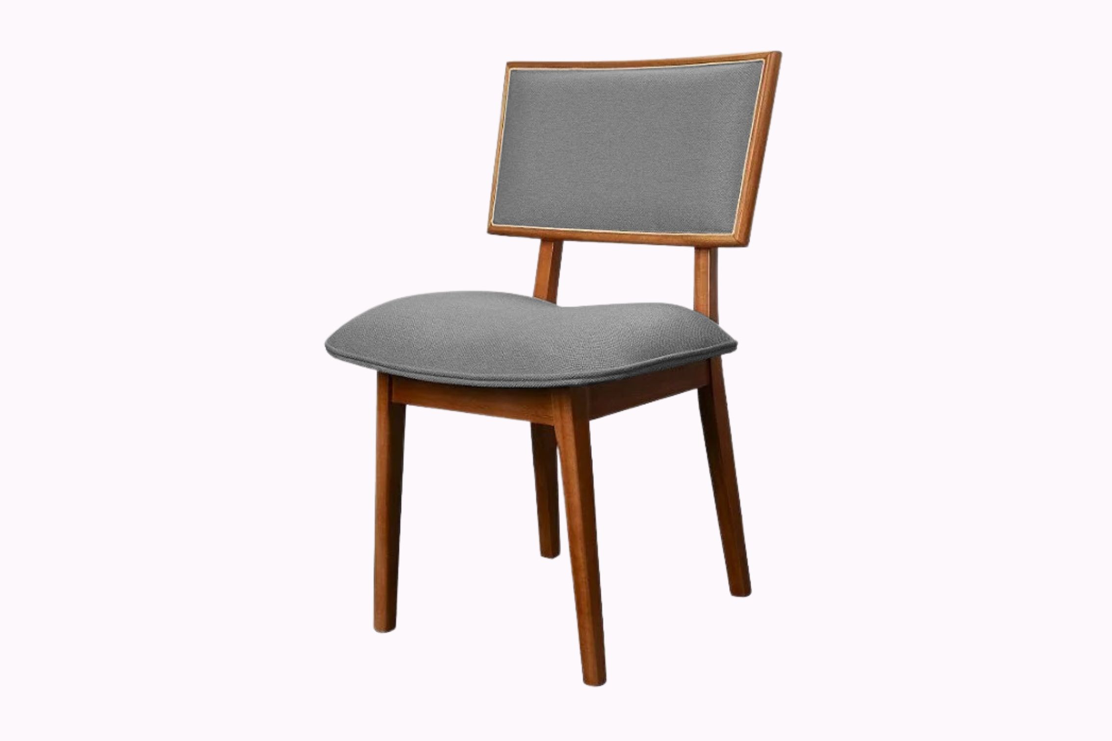 Cadeira com estrutura em madeira maciça, assento e encosto estofados para máximo conforto. Possui acabamento em verniz de alta qualidade, unindo elegância e robustez. Ideal para quem busca estilo e durabilidade.