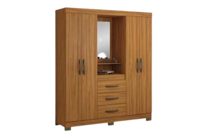 Um clássico que é sucesso a muito tempo, o Guarda-Roupa NT 5015, possui o famoso modelo Capelinha com espelho centralizado. Ele possui um amplo espaço, e sua estrutura é formada por 3 gavetas externas, um calceiro e um cabideiro em madeira e 3 prateleiras para uma melhor organização.