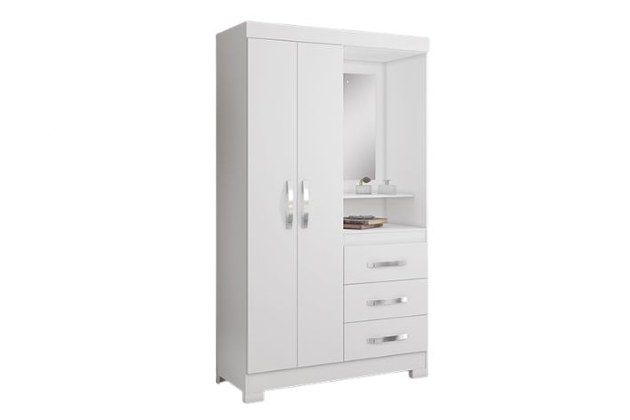 Medidas (cm): (A x L x P) 188 x 108 x 45 cm Descrição Técnica: - Produzido em MDP - Prateleiras internas; - 2 portas e - 3 gavetas com corrediças metálicas; - Espelho/ Cabideiro; - Pintura Ultravioleta. Mais Informações: O Guarda-Roupa NT 5170 é perfeito para o seu quarto pois tem um ótimo espaço para deixar suas roupas organizadas! Com o design moderno e ao mesmo tempo prático, ele complementa sua decoração, além de organizar suas roupas e acessórios através das 3 prateleiras internas e de um cabideiro. Ele está disponível em 2 opções de cores, para você escolher aquela que mais combina com o seu ambiente. Informações importantes: As cores do produto podem variar de acordo com o seu monitor, a iluminação do ambiente em que você está e até mesmo a sua percepção visual. Além da cor pequenos detalhes e acabamentos podem não ficar evidentes na foto, por isso as imagens são meramente ilustrativas. Os objetos decorativos que aparecem na foto não acompanham o produto.