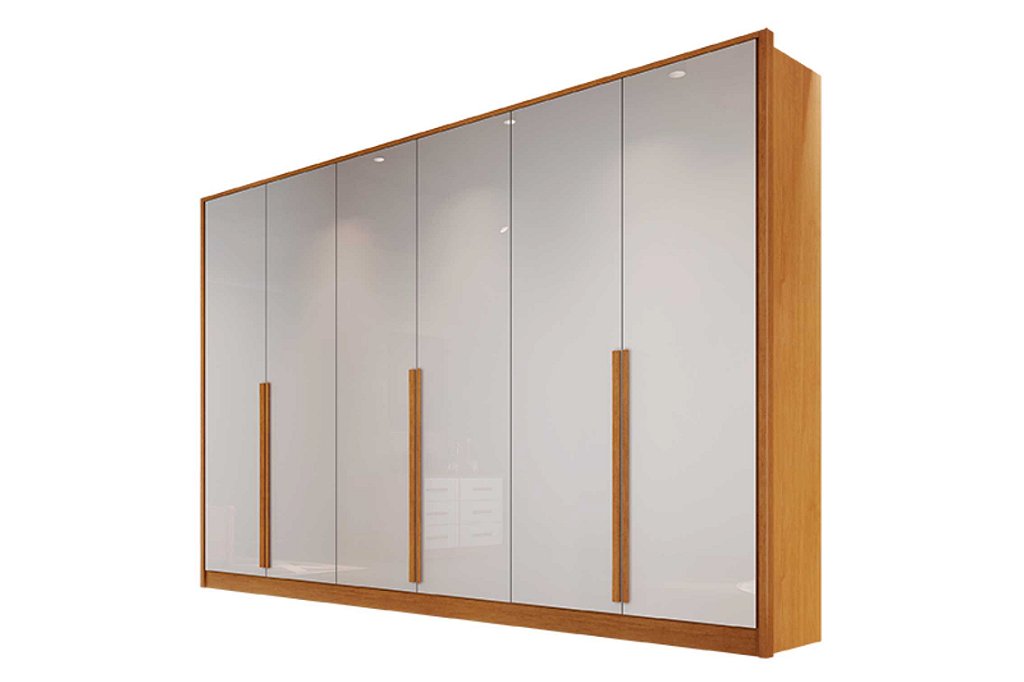 Guarda-roupa com estrutura 100% MDF de 15mm, ideal para quem busca qualidade e durabilidade. Possui 6 portas com puxadores em madeira e 8 gavetas internas com corrediças telescópicas, que garantem praticidade no dia a dia. Com amplo espaço interno e área dedicada para roupas longas, oferece organização completa e funcionalidade para o seu ambiente.