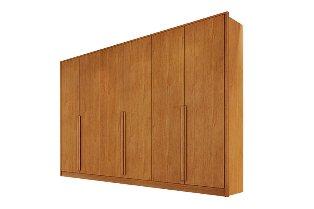 Guarda-roupa com estrutura 100% MDF de 15mm, ideal para quem busca qualidade e durabilidade. Possui 6 portas com puxadores em madeira e 8 gavetas internas com corrediças telescópicas, que garantem praticidade no dia a dia. Com amplo espaço interno e área dedicada para roupas longas, oferece organização completa e funcionalidade para o seu ambiente.
