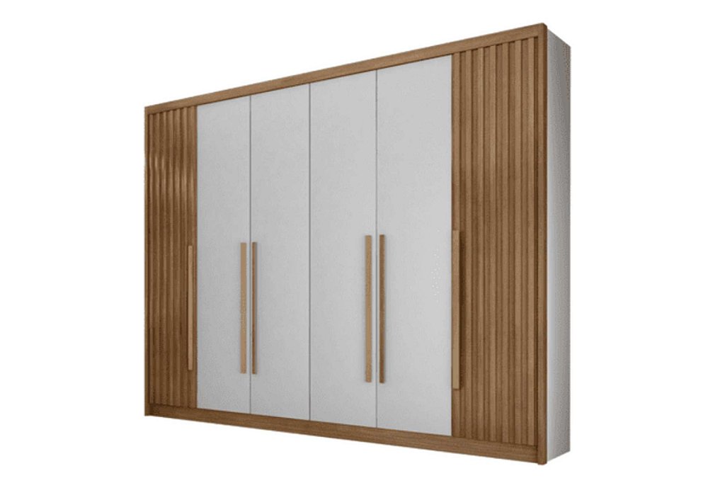 O nosso guarda-roupa é produzido com 100% MDF de alta qualidade, garantindo durabilidade e resistência. Com dobradiças de pressão de 35mm e corrediças telescópicas, você terá facilidade e praticidade na hora de abrir e fechar as portas e gavetas. Além disso, o cabideiro em alumínio oferece suporte para pendurar suas roupas de forma organizada.