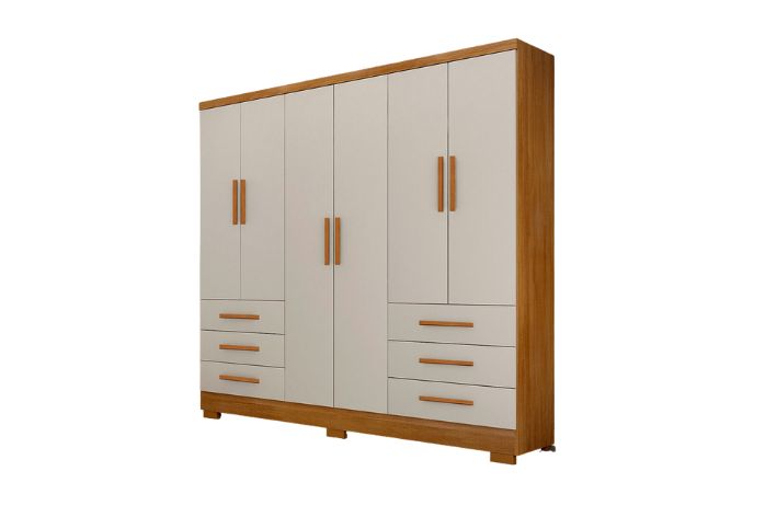 O Guarda Roupa que Vai proporcionar um ambiente aconchegante mantendo um visual sofisticado e funcional. Composto por peças de extrema qualidade e com excelente espaço interno bem distribuídos, oferecendo máxima organização de forma prática. Fabricado em 100% MDP, 6 portas de bater. Possui 6 gavetas com corrediças telescópicas, cabideiros em alumínio. Amplo espaço interno. Aproveite!