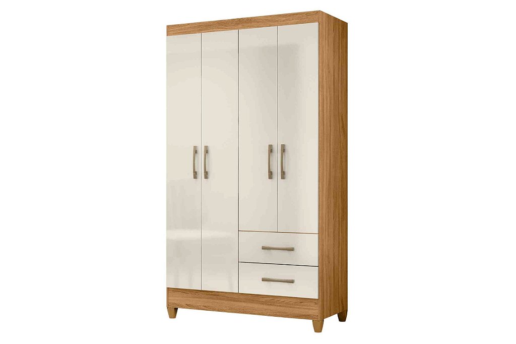 Com 4 portas de bater, este guarda-roupa oferece uma grande capacidade de armazenamento, garantindo que todas as suas roupas e acessórios fiquem devidamente organizados e protegidos. Além disso, ele conta com 2 gavetas com corrediças de metal, proporcionando um espaço extra para guardar peças menores.