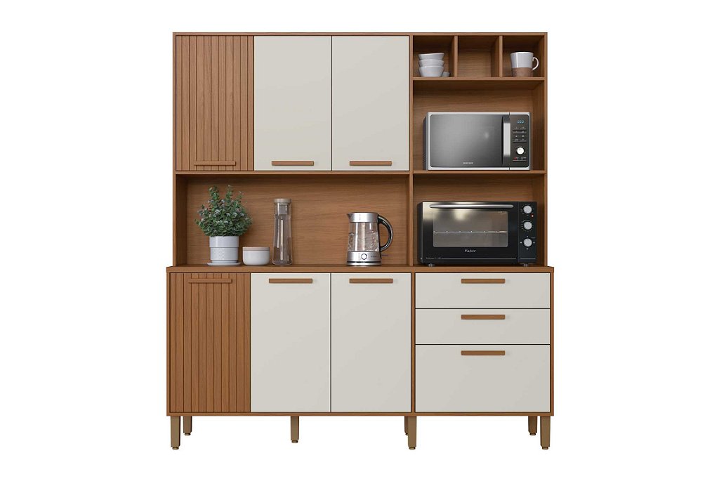 Uma cozinha prática e moderna, com tampo de MDP 15mm, duas gavetas, seis portas e dobradiças metálicas, ideal para organizar seu espaço com estilo e durabilidade. Perfeita para quem busca funcionalidade no dia a dia.