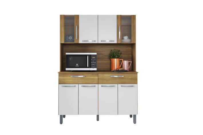 Possui estrutura produzida em MDP de 12 e 15 mm, com portas em MDP de 15 mm. Acabamento interno e externo com pintura UV na cor branco brilho. As dobradiças utilizadas na porta são metálicas de pressão 26mm. O sistema de montagem é feito com parafusos e cavilhas. Os puxadores são em ABS modelo perfil. O sistema de embalagem é feito com tampo e fundo, o qual aumenta a proteção dos volumes no transporte e manuseio.
