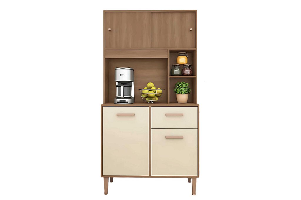 Kit cozinha prático e funcional com 4 portas, sendo as superiores com sistema deslizante. Possui dobradiças e corrediças metálicas, que garantem maior durabilidade. Conta com pés em plástico, oferecendo estabilidade e facilidade na limpeza.
