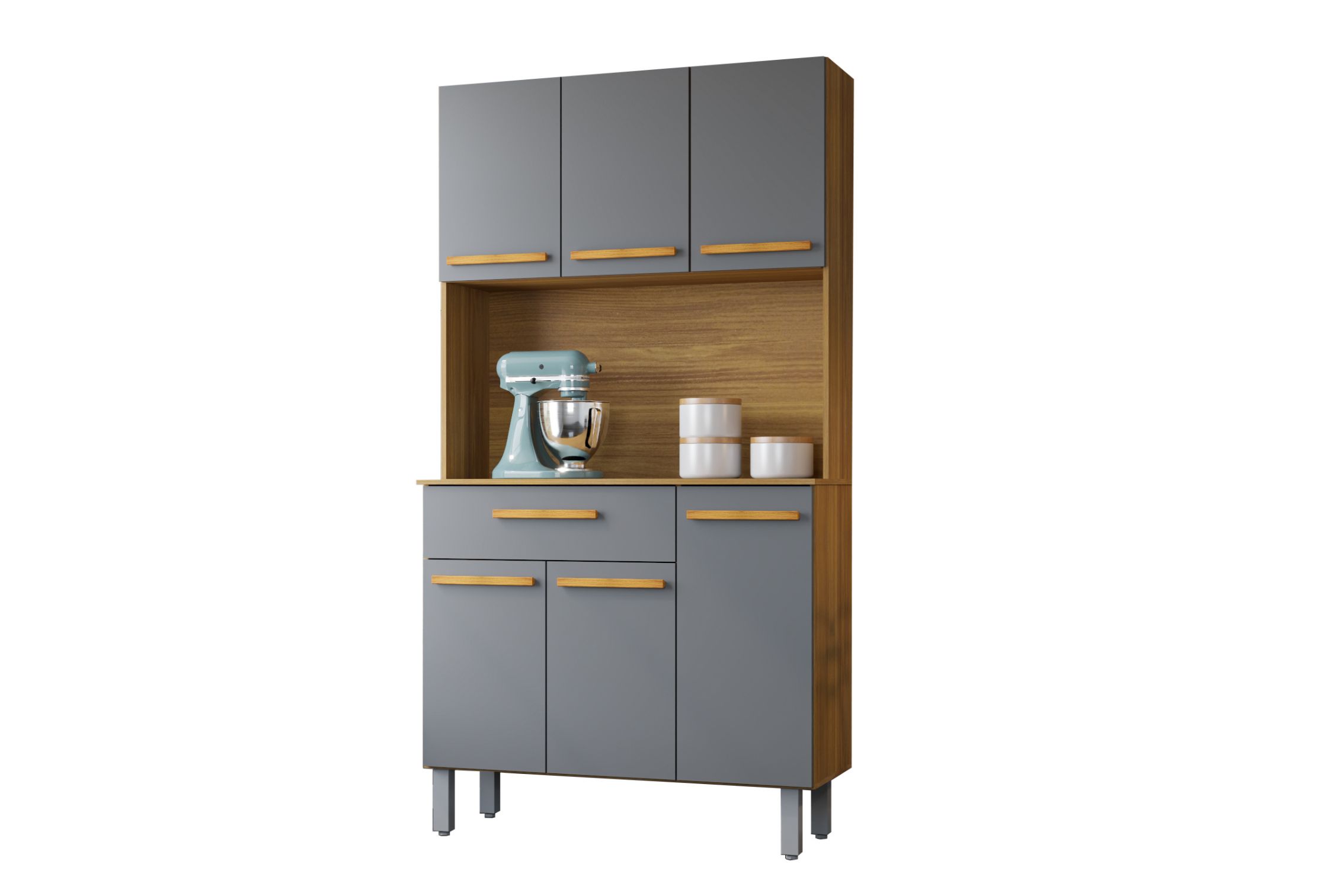 Kit cozinha com acabamento em pintura UV, trazendo um visual moderno e prático para o dia a dia. Possui dobradiças metálicas de pressão, gaveta com corrediças metálicas e puxadores em MDF revestido, garantindo funcionalidade e um bom acabamento para sua cozinha.