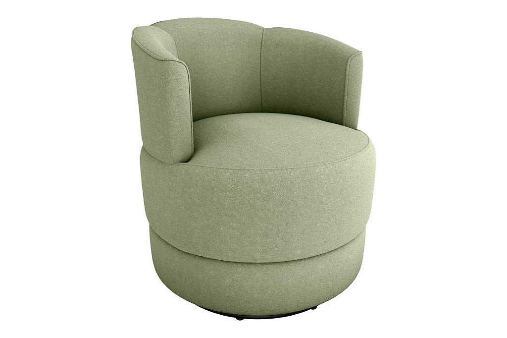 Design e conforto em cada detalhe: poltrona giratória com assento em espuma D23, encosto em espuma D20, base de ferro resistente e estrutura em madeira de eucalipto para durabilidade e estilo no seu ambiente.