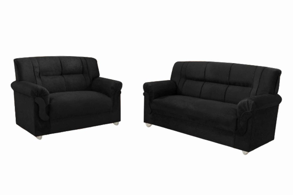 O Jogo de sofá com 2 e 3 Lugares em Tecido Suede tem estrutura em madeira de eucalipto em nova técnica de travamentos, evitando rompimentos nos encaixes de braços.Assento com espuma D-23 e cinta elástica de alta resistência.Tecido Suede. Encosto fixo.Deixe sua sala de estar mais bonita e confortável.