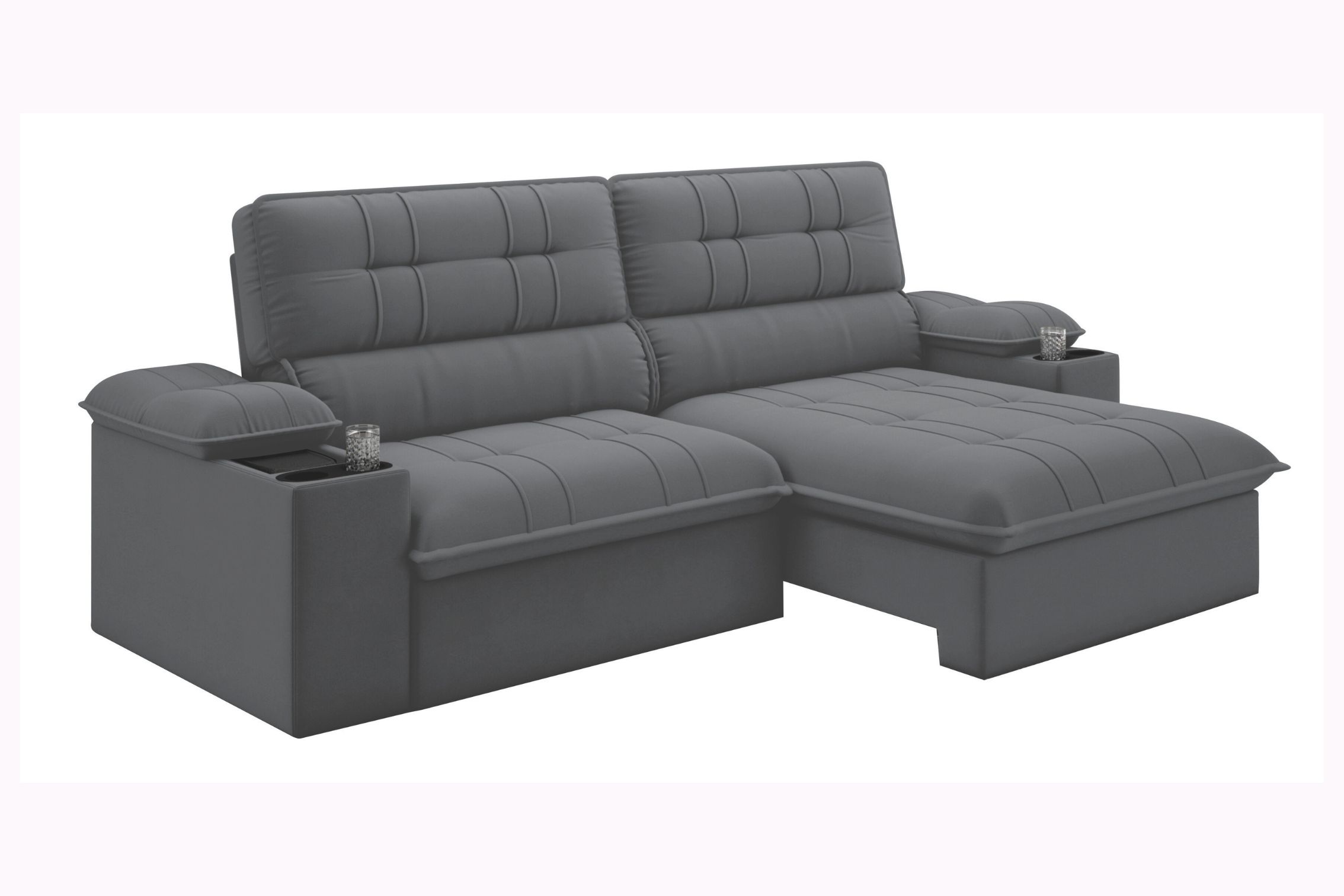 Esse sofá foi pensado para quem leva conforto a sério, com porta-copos e cooler embutido que deixam tudo ao seu alcance. O assento com molas espirais, espuma D28 e percinta elástica entrega maciez, firmeza e conforto prolongado. É o sofá ideal para transformar seus momentos de descanso em uma experiência completa.